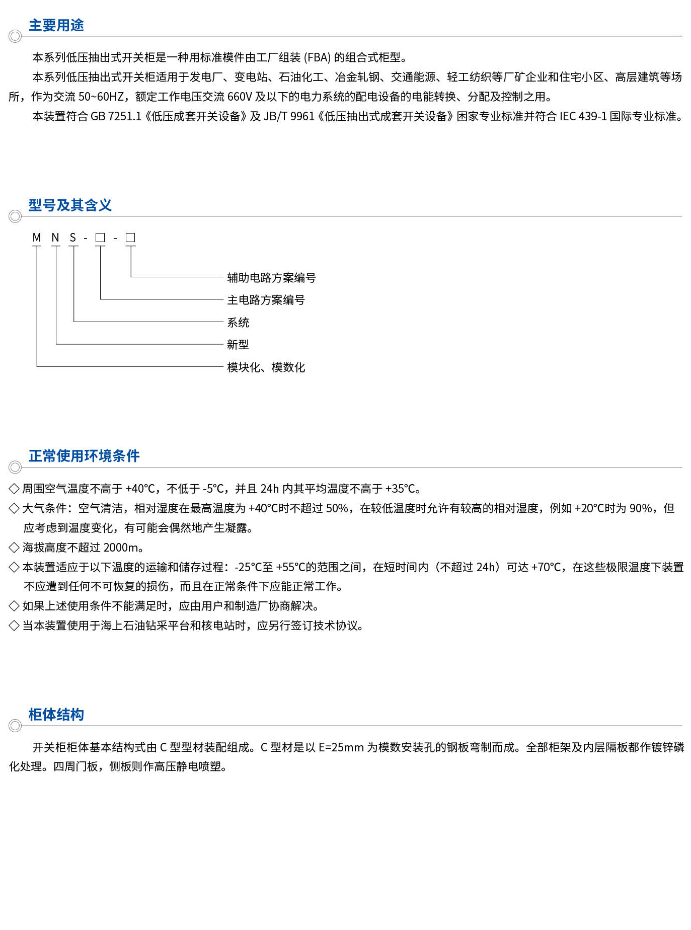 MNS低壓抽出式開關(guān)柜