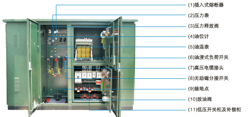 用,這就要求制造廠按不同的用戶需求來設計制造,每個用戶所用的供電變壓器容里、開關回路多少、外圍環(huán)境、布置方式等均有差異。由于變壓器安裝在戶外的箱體中,戶